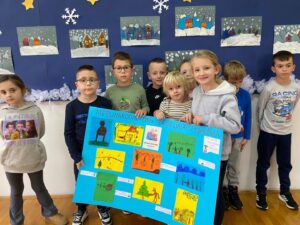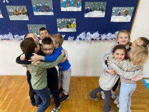Učenici prvog razreda zajedno sa svojom učiteljicom, 21.siječnja 2025., obilježili su Dan zagrljaja u vedrom i toplom ozračju. Kroz razgovor i zajedničke aktivnosti učenici su učili o važnosti prijateljstva, empatije i međusobnog poštovanja. Dan je protekao uz osmijehe, lijepe riječi i, naravno, zagrljaje koji su dodatno uljepšali školski dan i potaknuli osjećaj zajedništva.