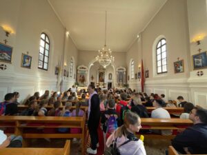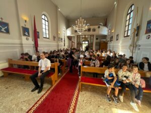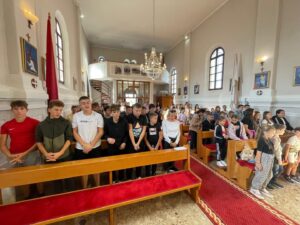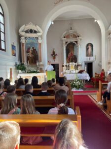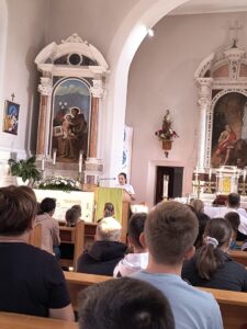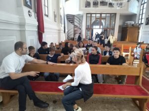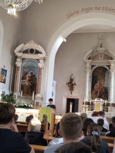 Nakon dolaska u Jasenice, učenici su posjetili župnu crkvu, gdje ih je srdačno dočekao don Šime, naš župnik. U ugodnom razgovoru svećenik je učenicima govorio o povijesti župe, važnosti zajedništva te ulozi vjere u svakodnevnom životu. Učenici su imali priliku postavljati pitanja i razmijeniti svoja razmišljanja, što je razgovor učinilo posebno zanimljivim i poticajnim.
